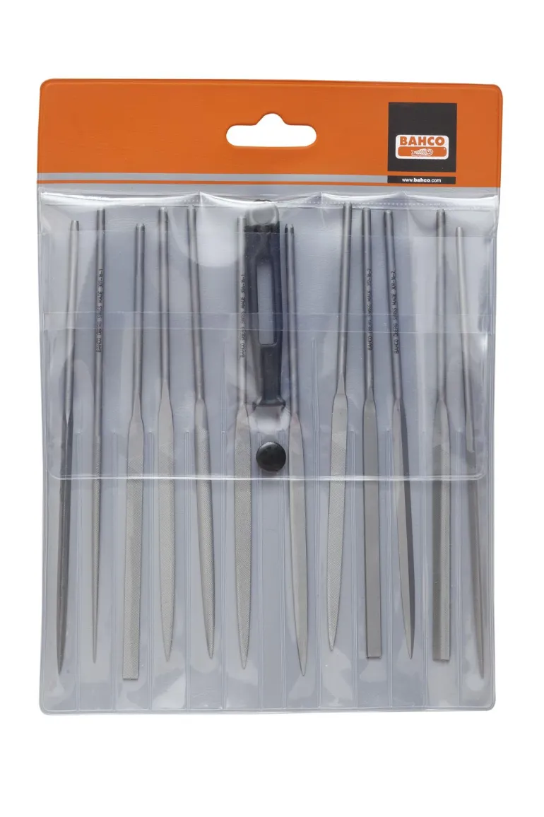 Neulaviilasarja muovitaskussa. Sisältää viivakahvan ja 12 viilaa. Pakkauksessa on kaksi puolipyöreää, pyöreää ja kolmikulmaista viilaa ja yksi kutakin tyyppiä (tasainen, neliö, veitsiviila, ovaali ja linnunkieli). Kaikkien karheus on 1, medium.