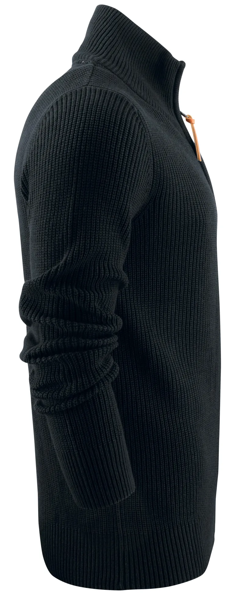 James Harvest Flatwillow on puolivetoketjullinen neulepusero korkealla kauluksella. Resori kauluksessa, hihansuissa ja helmassa. Lisäksi kyynärpäissä vahvikkeet sekä keinonahkainen vetoketjun vedin.