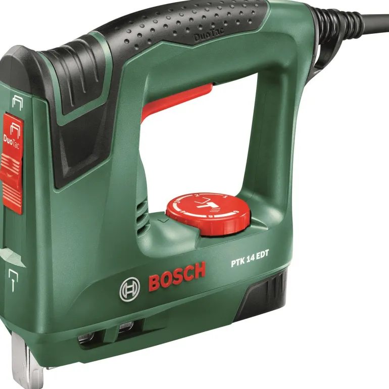 Tämä monipuolinen niittipistooli on mukava ja sitä voi helposti säätää niin, että niittaaminen on uskomattoman helppoa. DuoTac-kytkimellä on helppo vaihtaa kaksinkertaisten ja yksittäisten niittien välillä kunkin projektin vaatimusten mukaan. Elektroninen iskutehon valinta tarjoaa täydellisen tehon materiaalista riippuen. Paina ja vapauta -järjestelmä lisää sekä turvallisuutta että hallintaa poistamalla itseaktivoitumisen. PTK 14 EDT sopii erinomaisesti pehmeiden ja ohuiden materiaalien kiinnittämiseen puuhun. Niitit tai naulat eivät lopu yllättäen lippaan tasoilmaisimen ansiosta.