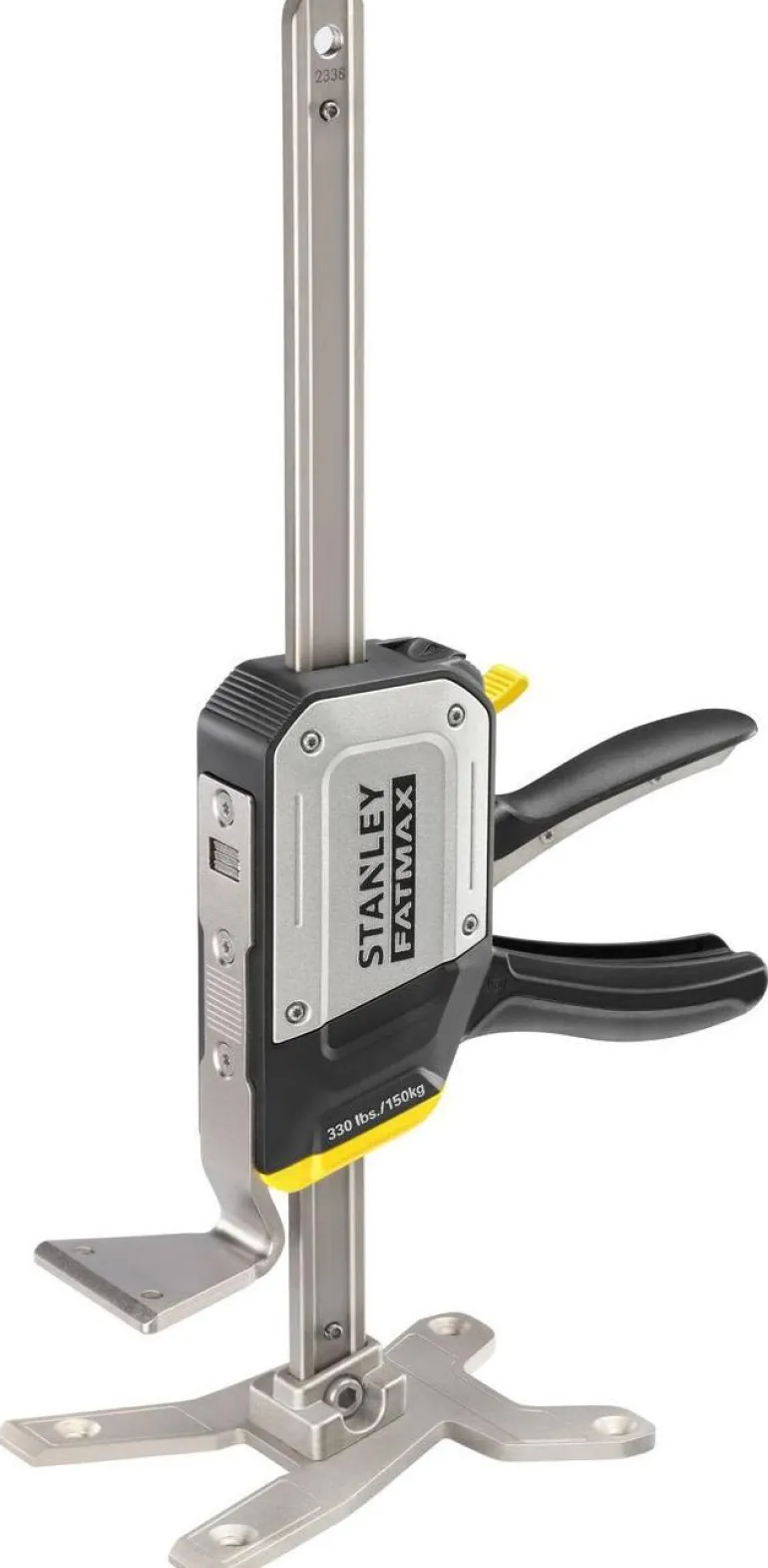 STANLEY FATMAX® TradeLift™ -nostotyökalu on suunniteltu helpottamaan raskaiden materiaalien nostamista, suoristamista, paikallaan pitämistä sekä asentamista. Kestävä nostotyökalu 150 kg nostovoimalla voi olla hyödyksi esim. yksin työskenteleville. Voidaan hyödyntää monissa sovelluksissa, kuten keittiö-, lattia-, ovi- ja ikkuna-asennuksissa, puusepäntöissä, kipsilevytöissä ja yleisrakentamisessa. Nostotyökalussa on vahvistettu painovipu, jota voidaan käyttää myös jalalla, mikä mahdollistaa kädet vapaana työskentelyn mukavuuden ja tehokkuuden vuoksi. Hienosäädin laskee nostolevyä jopa 2,5 mm per painallus tarkkaa säätöä varten. Kokonaisnostokapasiteetti on 220 mm. Maksimaalisen vakauden takaamiseksi nostotyökalussa on neljä upotettua reikää ruuveille, joiden avulla käyttäjä voi kiinnittää nostotyökalun turvallisesti, sekä suuri aluslevy kaatumisriskin minimoimiseksi. Upotettu vapautuspainike estää täyden vapautuksen aktivoinnin vahingossa. Ergonominen kahva tarjoaa pitävän otteen ja lisää käyttömukavuutta. 2 kpl FATMAX® TradeLift™ -nostotyökaluja.