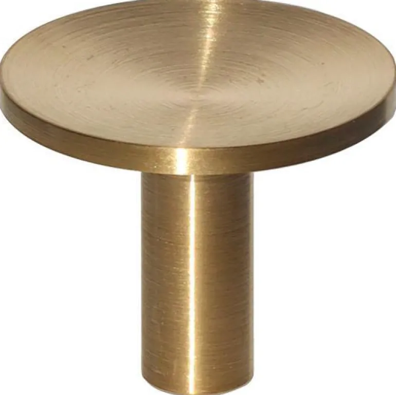 Harjatusta messingistä valmistettu nuppi Gustavsbergiltä, ⌀ 28 mm. Voidaan käyttää myös ripustuskoukkuna.