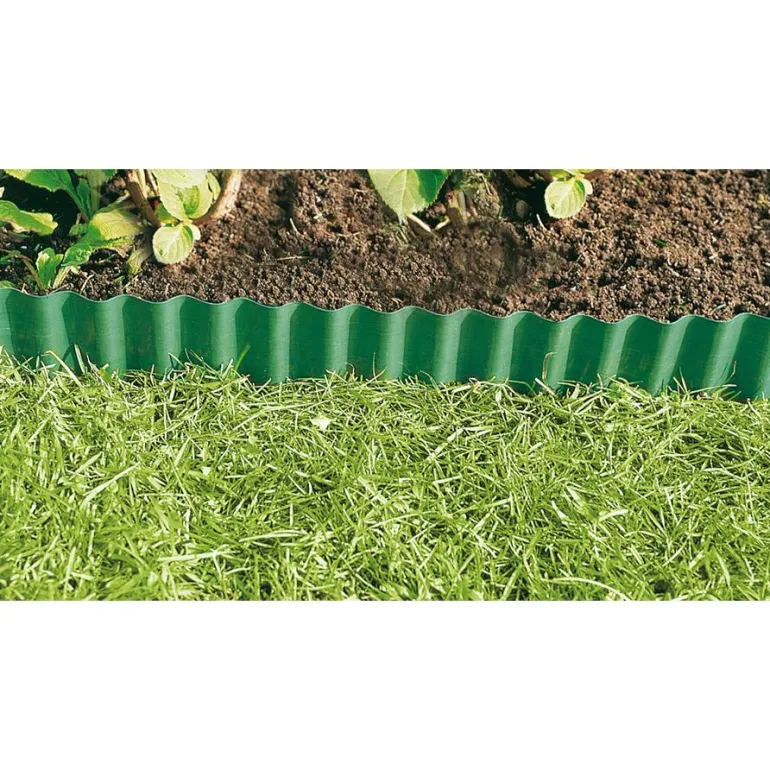 Vihreä muovinen nurmireunus. Pituus 9 metriä. Erottaa kätevästi nurmikon ja kukkapenkin, jolloin ruoho ei pääse kukkapenkkiin. Käytä suoriin ja muotoiltuihin alueisiin.