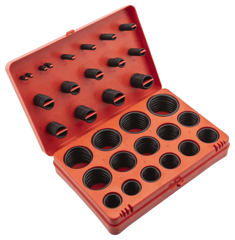 Pela 508699 on O-rengaslajitelma sisältäen 382 kappaletta O-renkaita eri ko`oissa välillä 2,9-43,82 mm (sisähalkaisija).