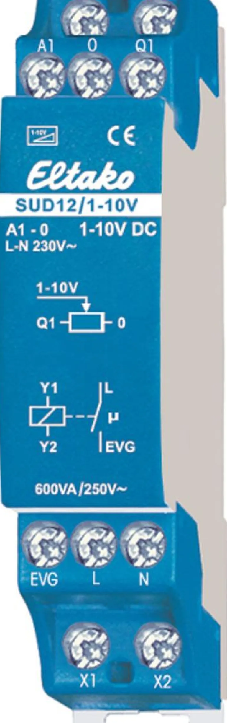 1 ei potentiaalivapaa NO-kytkin 600 VA ja 1–10V ohjauslähtö 40 mA. Kulutus valmiustilassa vain 0,9 wattia. Himmennin vaatii nollajohdon.