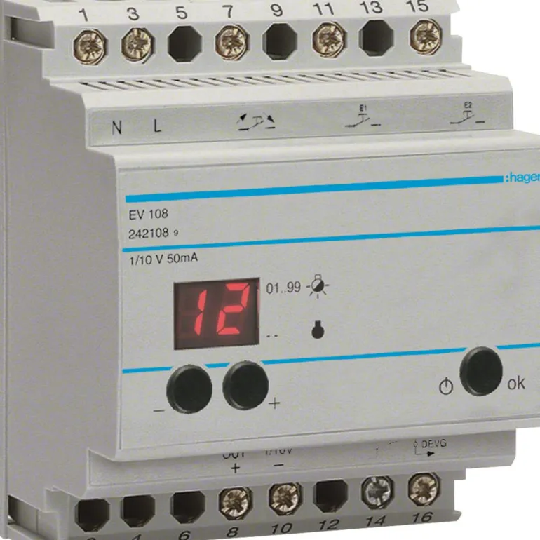 Yliohjaus (3 valaistustasoa) tai valoskenaario (2 valaistustasoa). Valoskenaario (painike kytkettynä); Kun painiketta painetaan (katkaisin sulkeutuu), esiasetettu arvo otetaan käyttöön.