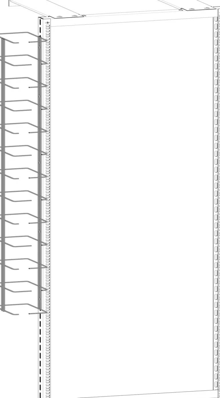 Ohjuripaneeli jalustan sivulle asennusta varten (ruuvi MP-855 E). Kunkin johtimen välinen etäisyys on 3U (~133 mm), yhteensä 13 johdinta