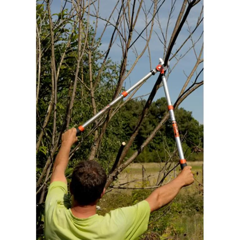 Teleskooppiset raivaussakset, pituus 700–900 mm, laadukkaasta teräksestä valmistetut läpikarkaistut terät jättävät siistin leikkausjäljen, leikkauskapasiteetti 40 mm.