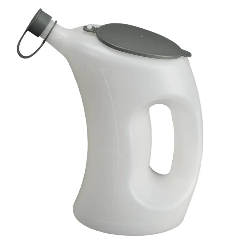 Valkoista, läpinäkyvää PE-muovia. Kannellinen. Mitta-asteikko sivulla. Taipuisa putki saatavana lisävarusteena.