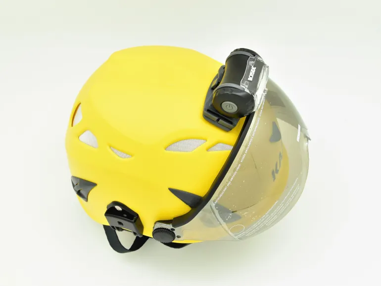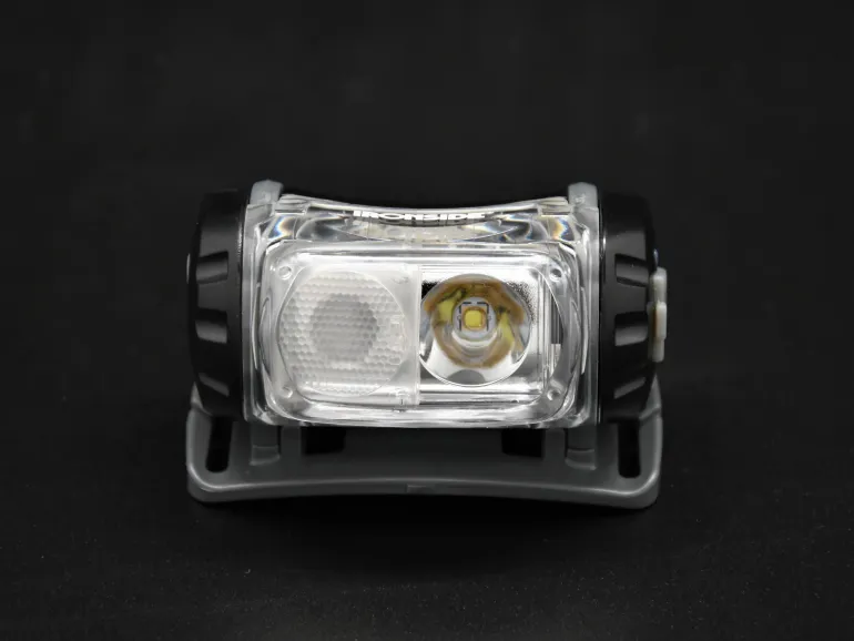 Ladattava otsalamppu säädettävällä lamppuosalla. Enintään 200 luumenia. Kolme valotilaa, jotka tuottavat eri muotoisen valon lähellä ja kaukana työskentelyyn, sekä vilkkuvalo. Punainen ledi kiinteästi palavana tai vilkkuvana. Joustava otsanauha. Toimitukseen sisältyy itseliimautuva kypäräkiinnike ja latausjohto.