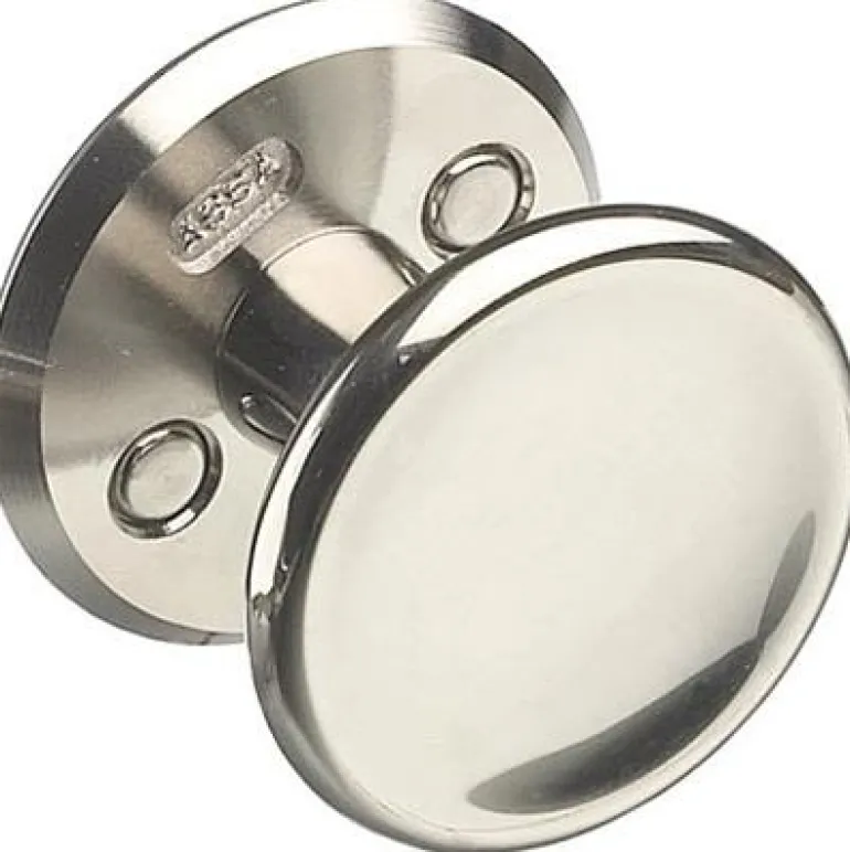 Nikkelipinnoitettu ovinuppi oville ja luukuille. Kiinteään asennukseen.