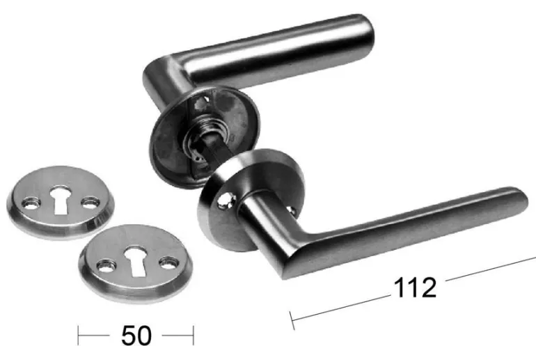 Vankka messinkinen välioven painike, harjattu kromipinta. Sisältää avainlevyn.