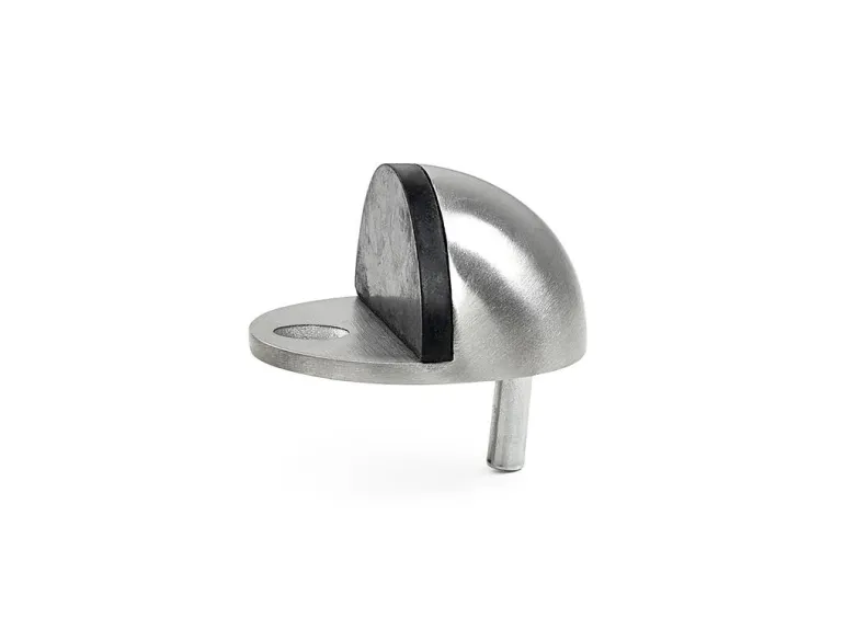 Ovenpysäytin ruostumatonta terästä (kumivaimentimella). Suojaa ovea ja seiniä iskuilta ja vahingoilta. Puu- tai kivilattialle. L45 x K25 mm.