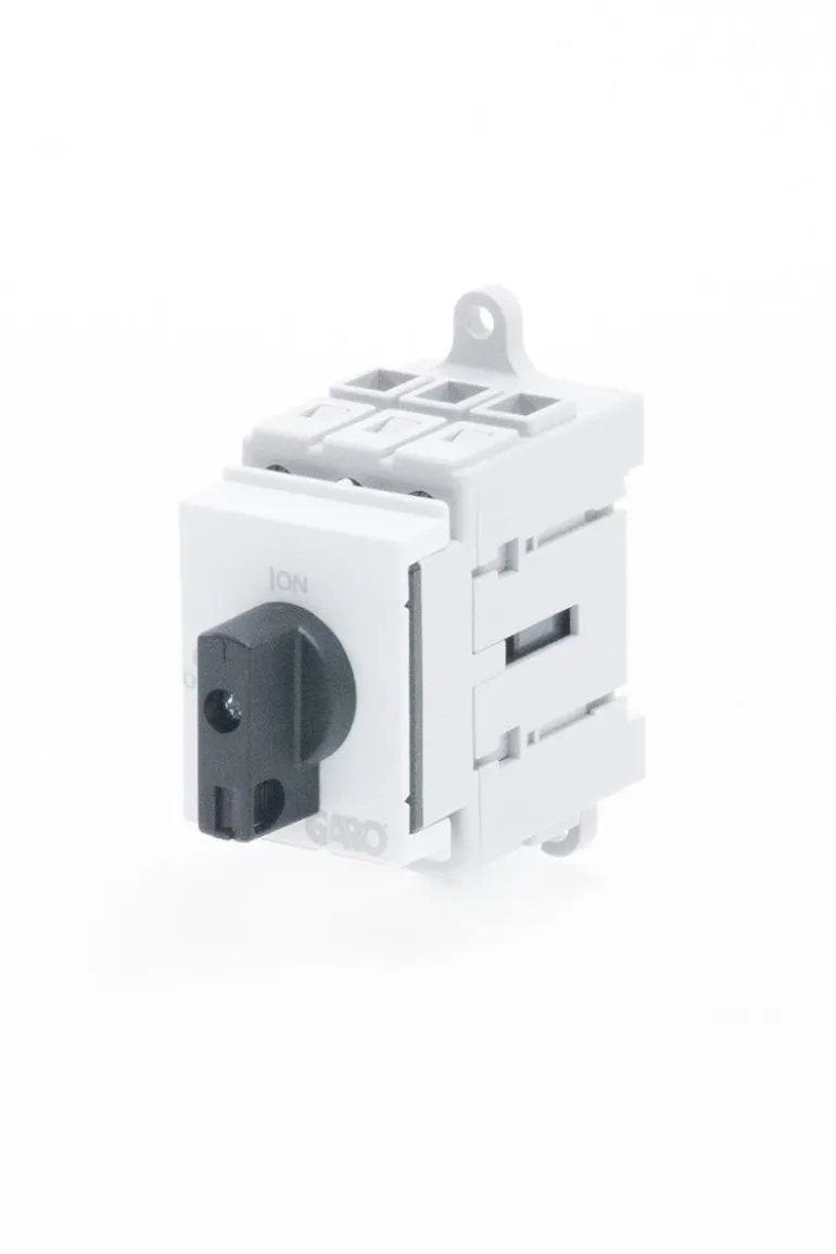 Pääkytkin DIN-kiskoon asennettavaksi. Täyttää vaatimukset pääkytkimenä, jolla on erotinominaisuudet, voidaan sijoittaa koteloihin, joissa on johdonsuojakatkaisijat.