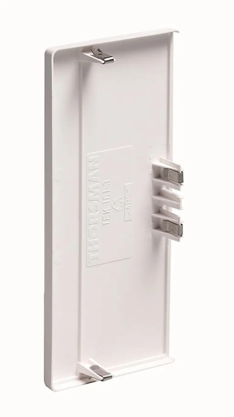 Päätykappale INKA 123-4/72 -kanavaan. Asennetaan kanavan alaosaan. ESV = vasen, ESH = oikea. Jos päätykappale halutaan kiinnittää INKA-kanavaan erityisen tukevasti, käytetään päätykappaleen kiinnikettä.
