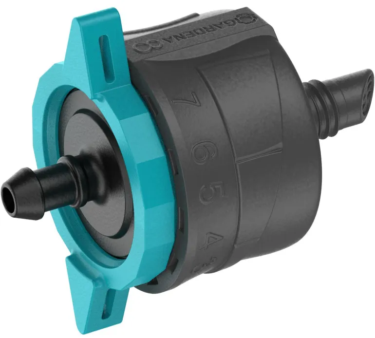 GARDENAn Micro-Drip-järjestelmään kuuluva päätytippusuutin 4,6 mm:n haaroitusputken loppupäässä olevien yksittäisten ruukkukasvien kasteluun. Kun päätytippusuuttimet yhdistetään 13 mm:n runkoputkeen, myös kasvirivien kastelu on mahdollista. Säädettävä päätytippusuutin on suunniteltu kasveille, joilla on erilaiset vedentarpeet.