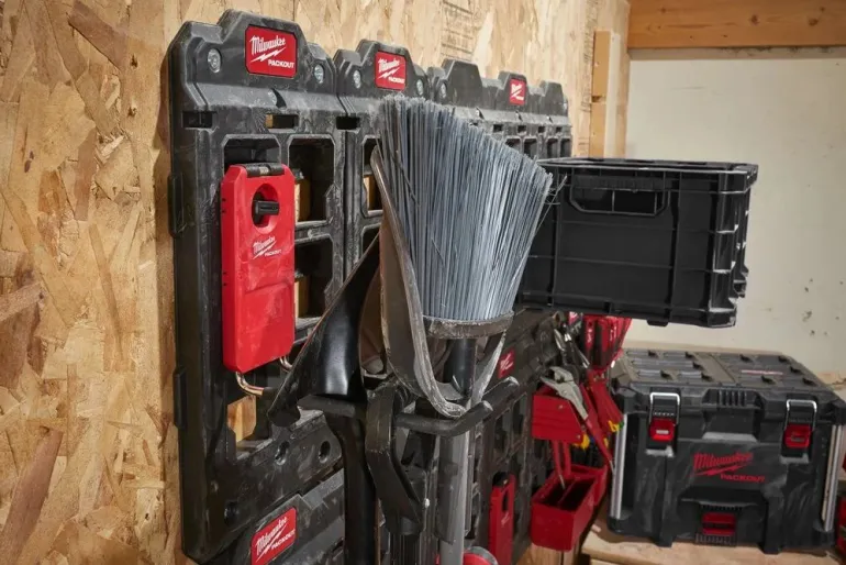 Milwaukee 4932480700 vahvat PACKOUT™-teräskoukut painavien työkalujen ja esineiden säilyttämiseen. Koukkujen pinnoite suojaa koukkuja ja säilytettäviä tavaroita.