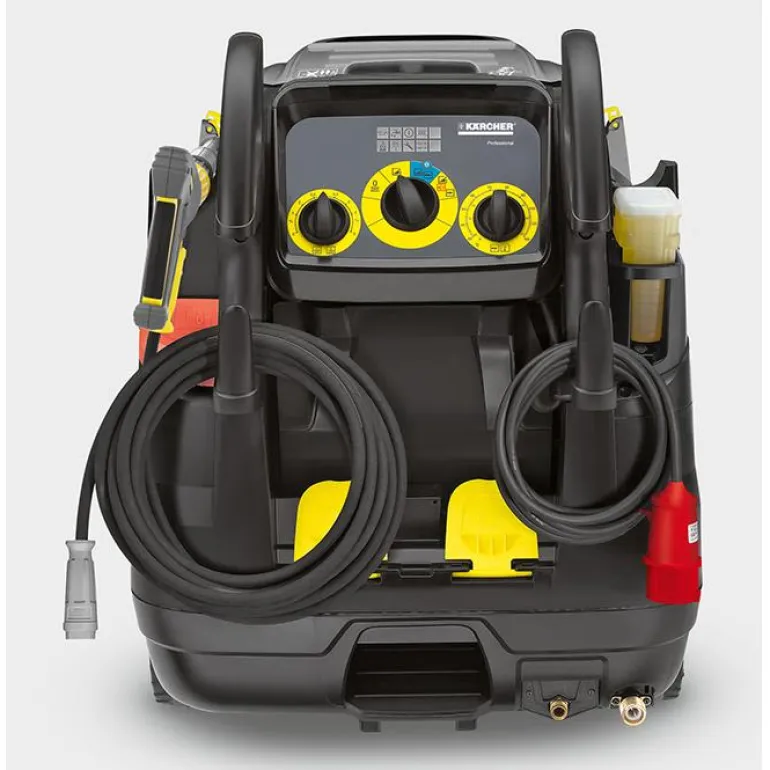 Kolmivaiheinen korkeapainepesuri enint. 180 bar. Kuumalle vedelle, varustettu vesijäähdytteisellä sähkömoottorilla ja 20 m pitkällä korkeapaineletkulla kelassa. Korkeapainepesurin vesitilavuus on jopa 800 l/h ja se mukautuu kustannustehokkaimpaan lämpötilaan ekotehokkuustilassa.