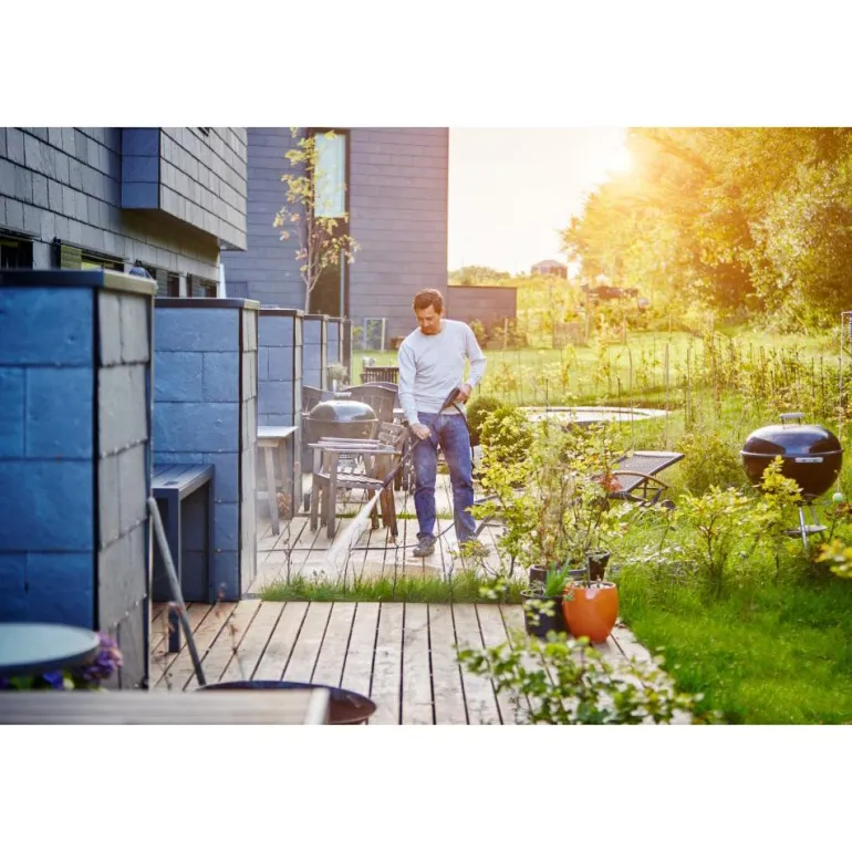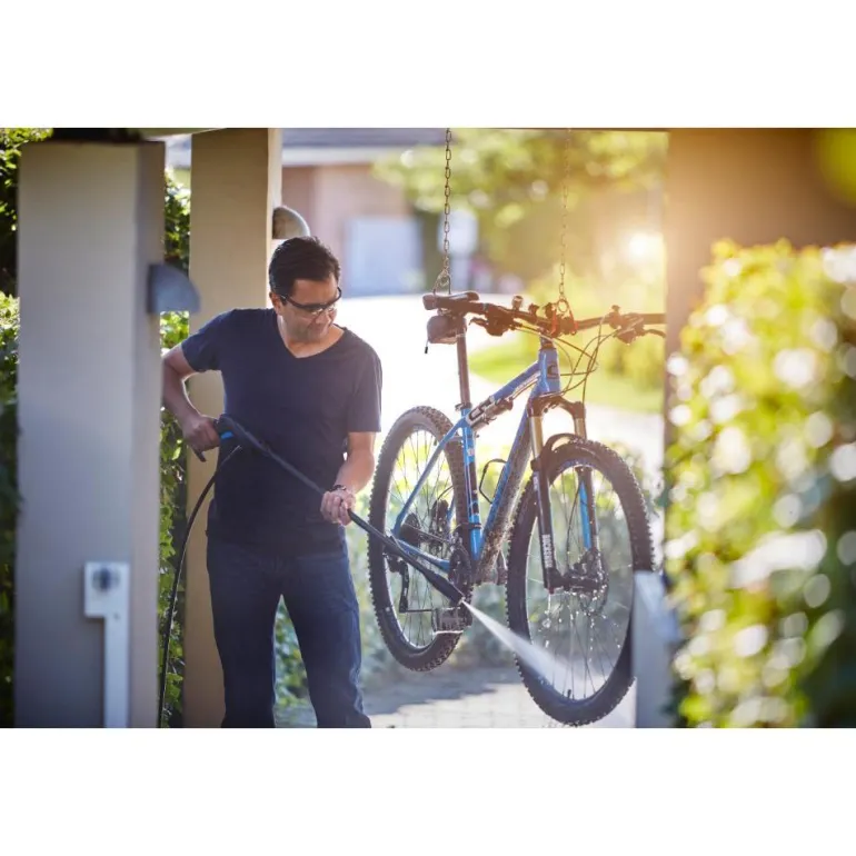 Painepesuri, jonka pumpun enimmäispaine on 120 baaria ja veden määrä jopa 440 l/h. Painepesuria on helppo käyttää, ja se on ihanteellinen puutarhan, pienten tai keskisuurten terassien sekä autojen, polkupyörien ja puutarhakalusteiden peruspuhdistukseen.