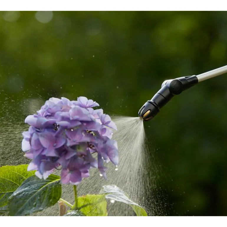 Ruiskussa on myös toinen kahva, joka helpottaa nostamista ja kantamista. Ruisku on varustettu pehmustetulla olkahihnalla, joten sitä on mukava kantaa. Vinolla suuttimella varustettu teleskooppinen ruiskuvarsi varmistaa pitkän kantaman ja on kätevä käytössä. Voit käyttää säädettävän suuttimen eri asentoja kasvien vaatimusten mukaisesti. Voit valita joko suihkun tai sumutuksen. Lisäksi käytettävissä on litteä suutin kapeiden kohtien tarkkaan käsittelyyn. Toisessa kahvassa on myös kätevä letkunpidin, joten voit kiertää letkun kahvan ympäri käytön jälkeen. Lisävarusteena paineruiskun mukana tulee nailonsuodatin, jonka avulla voit suodattaa itsetehtyjä kasvinsuojeluliuoksia, joiden valmistamiseen liittyviä ohjeita on pakkauksessa. Kun käytät luonnonmukaisia kasvinsuojeluaineita, kasvit saavat lisää ravinteita ja samalla suojaa tuhohyönteisiä vastaan.