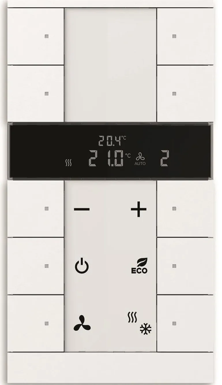 Vapaasti konfiguroitava monitoimiohjauselementti RTC-orjatoiminnolla. Integroitu KNX-väyläliitäntäyksikkö ja merkintäalue.