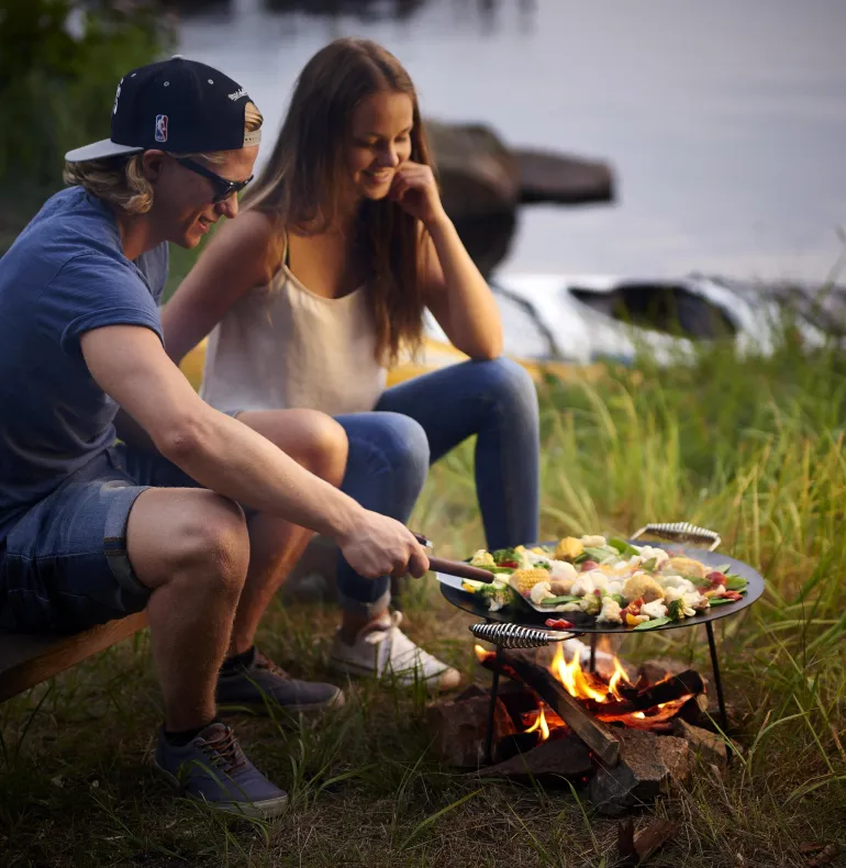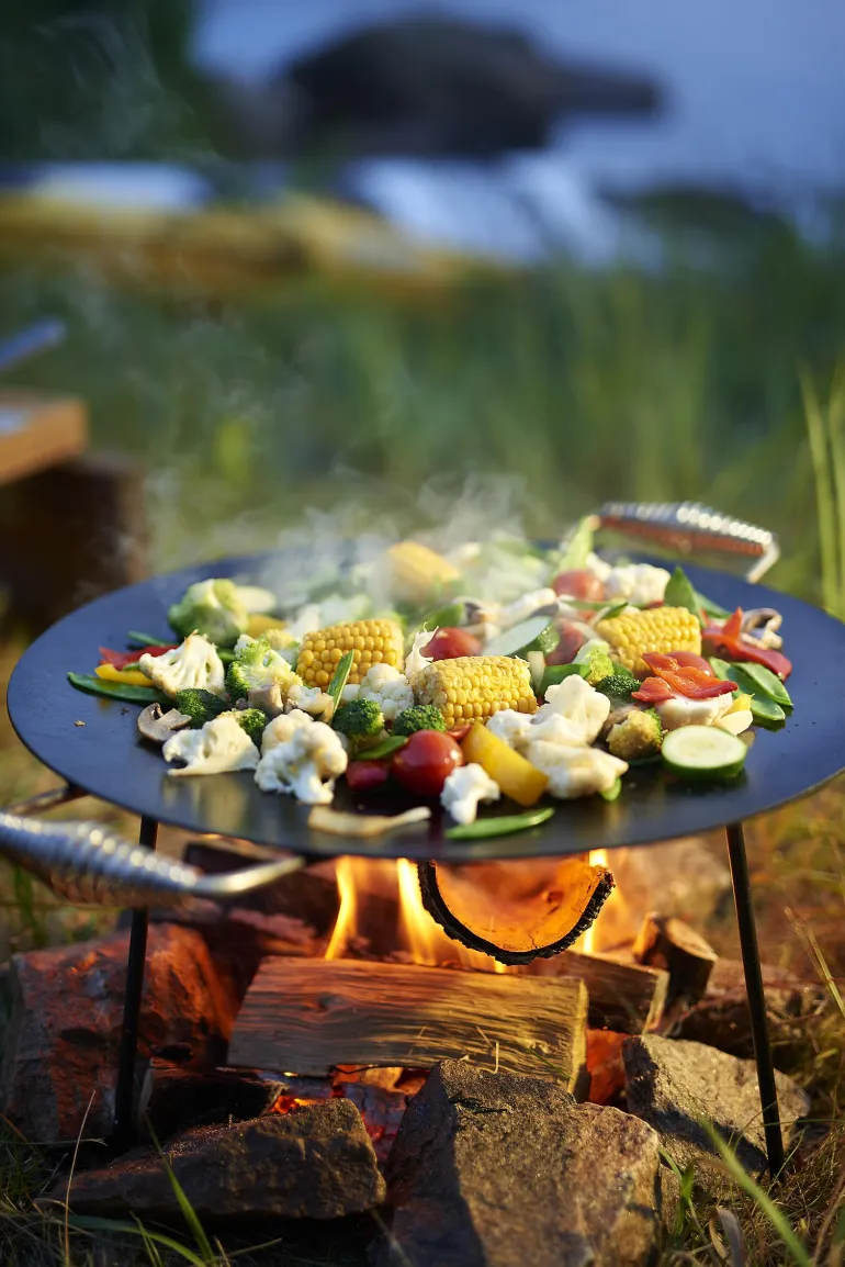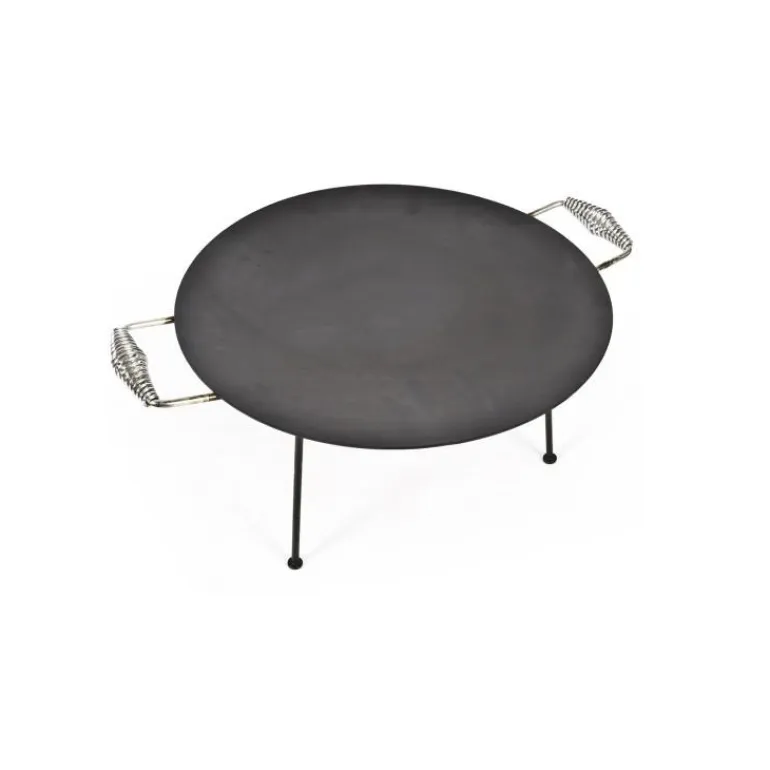 Laadukkaasta kuumavalssatusta teräksestä valmistettu paistolevy, jonka kahvat ovat kromattua jousiterästä.