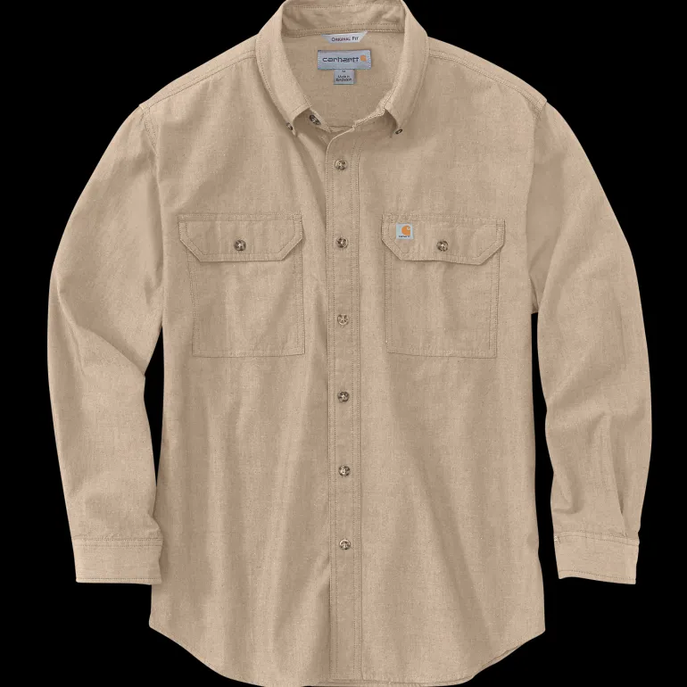 Carhartt 104368256-S on paita batiste/chambray-kankaasta Loose Fit-istuvuudella. Napillinen kaulus ja hihansuut. Kaksi napillista rintataskua (vasemmassa kynätasku ja Carhartt-logo). Laskokset olkapäissä lisäävät liikkuvuutta.