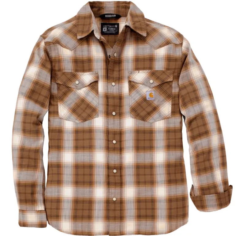 Mukava Carharttin paita jokapäiväiseen käyttöön. Kevyttä puuvillakangasta (98 % puuvilla ja 2 % elastaani) sisäänrakennetulla Rugged Flex® -joustolla. Pehmeä tuntuma ja hyvä liikkuvuus. Relaxed Fit -istuvuus (reilu). Paidassa on klassinen kaulus, kaksi napillista rintataskua (vasemmassa rintataskussa Carhartt-logo), edessä nappilista ja napilliset hihansuut. Materiaali on esipesty pehmeämmän tuntuman ja kutistumisen vähentämiseksi.