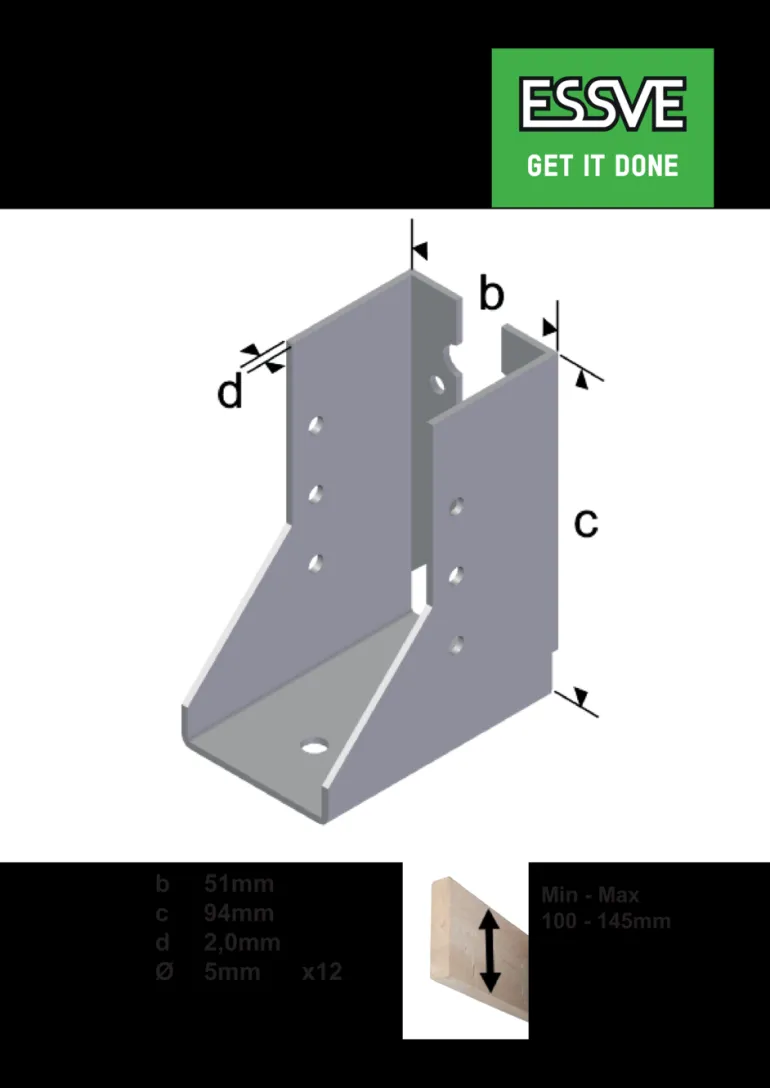 Tyypin I palkkikenkä, valmistettu 1,5 tai 2,0 mm:n kuumasinkitystä teräslevystä. Palkkikengät on varustettu 5 mm:n rei’illä nauloille/ruuveille ja 9 mm:n tai 11 mm:n rei’illä pulteille. Myös palkkikengän laipassa on palkin alle jäävä 7 mm:n reikä. ESSVE-palkkikengässä on sisäänpäin taivutetut siivekkeet, ja se on tarkoitettu samantasoisten puupalkistojen ja vasoitusten ankkuroimiseen, niin puu puuta vasten, kuin puu betonia tai muurausta vasten.