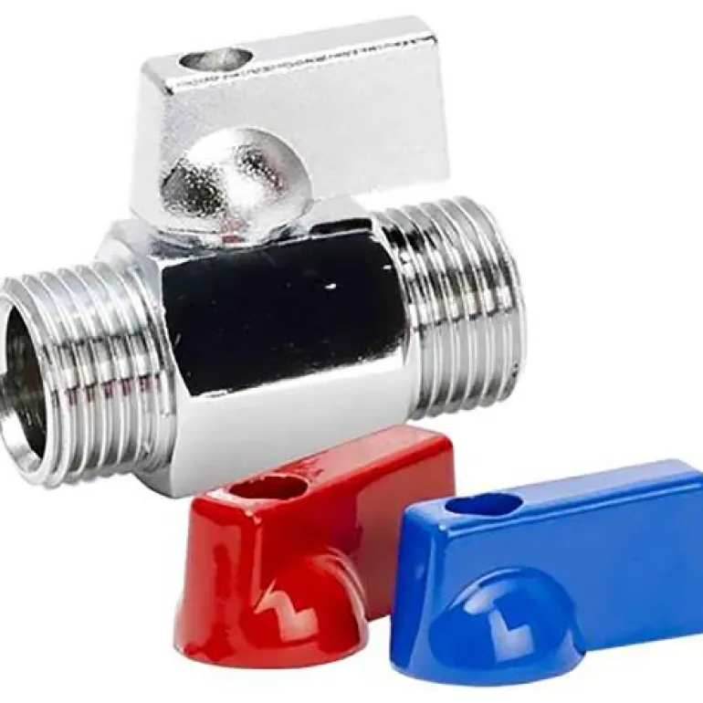 Minipalloventtiili, jonka tasaiset pinnat helpottavat esimerkiksi liitäntäletkujen asennusta.