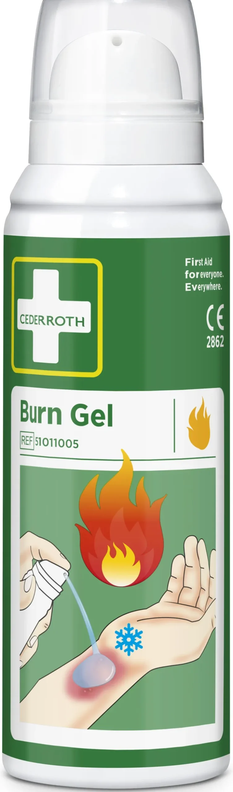 Cederroth 51011005 on 100 ml vesipohjaista palovammageeliä lieviin palovammoihin ja auringonpolttamiin. Se toimii väliaikaisena suojaavana esteenä ja viilentää ja rauhoittaa ihoa vähentäen kipua. Helppo levittää (geeli aerosolipullossa) ja voidaan käyttää useita kertoja.