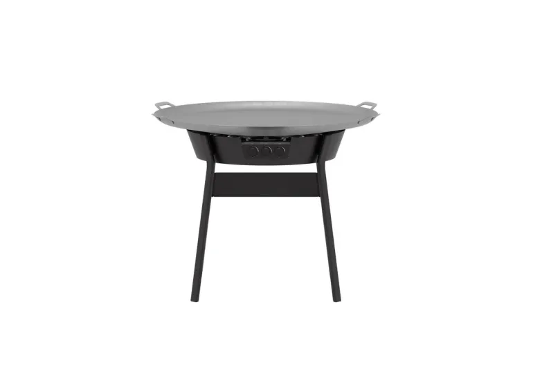 Tyylikäs, harkitusti muotoiltu pannusetti (kaasusetti), johon sisältyy emaloitu kaasupoltin ja tukeva metallijalusta, jossa on pitkät D-profiilijalat. Settiin kuuluu myös kuumavalssatusta teräksestä valmistettu pannu, jonka halkaisija on 120 cm.