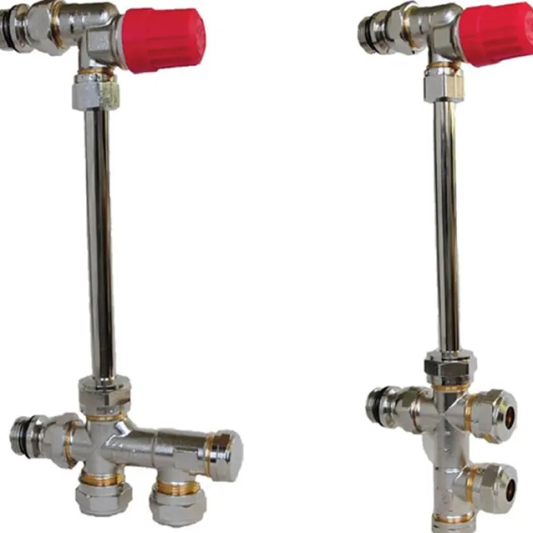 2-putkinen patterikytkentä, joka sisältää venttiilirungon, väliputken, alaosan, patteriliitännät 1/2″ ja liitännät putkiverkkoon. Patteriin, jonka maksimikorkeus on 600 mm. Varustettu vaihdettavalla liittimellä ja sopii patteriliitäntään G15.