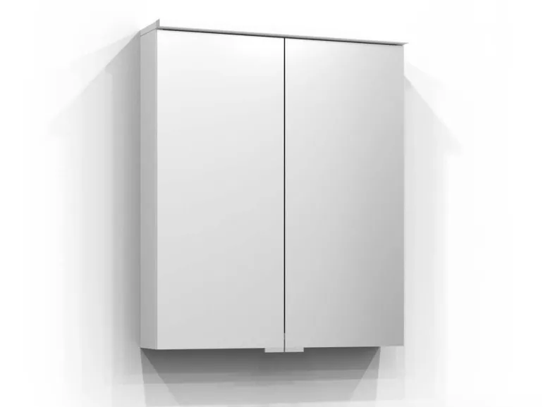 Svedbergs Sarek 55 on valkoinen peilikaappi peiliovilla. Lasihyllyillä. Materiaalina kosteussuojattu kalustelevy (MDF).