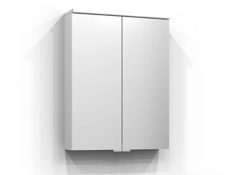 Sarek-peilikaappi, jossa on kaksi peiliovea ja kaksi siirrettävää lasihyllyä. Kaappi on valmistettu kosteudenkestävästä lastulevystä ja pienempiä kylpyhuoneita ajatellen, joten se ei ole kovinkaan syvä.