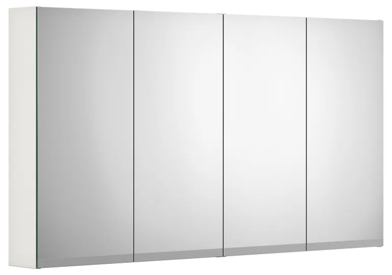 Gustavsbergin Artic-peilikaappi 120 cm kaksipuolisilla peiliovilla (4 peiliovea) ja kahdella siirrettävällä lasihyllyllä.