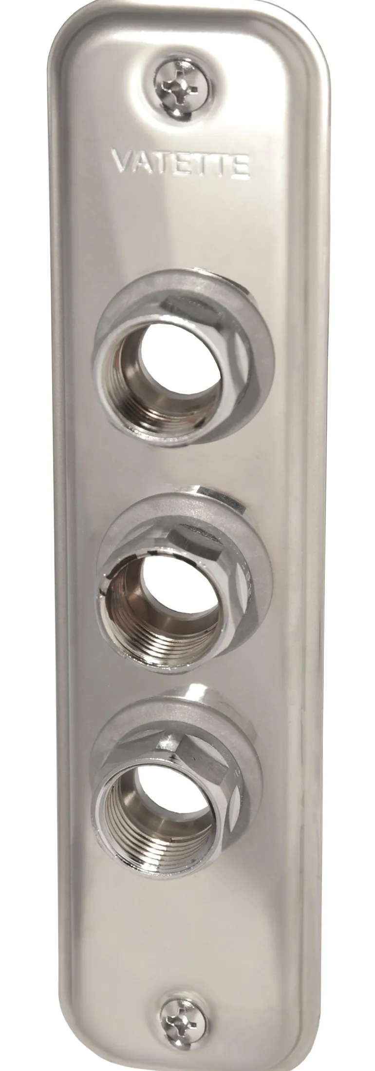 Vatette 8550613 on peitelaippa Ø 15 mm kupariputkille. Levyä voidaan käyttää myös Ø 10 ja 12 mm putkien kanssa, jos sitä on täydennetty 15×10/15×12 supistusosalla.