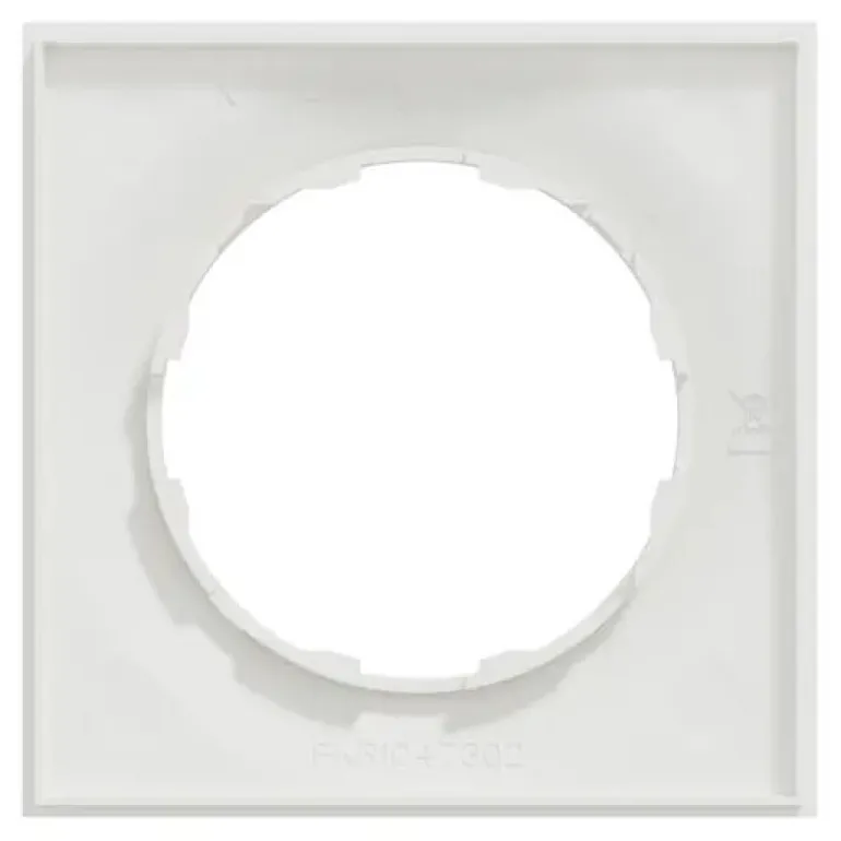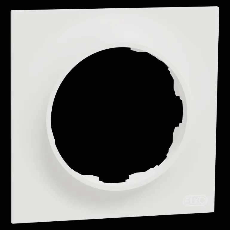 ELKO One 1-kehys, valkoinen. Tuotteen mitat ovat (W) 87 mm x (K) 87 mm x (S) 10,5 mm. Se on valmistettu kierrätetystä polykarbonaatista (PC). Mattapinta.