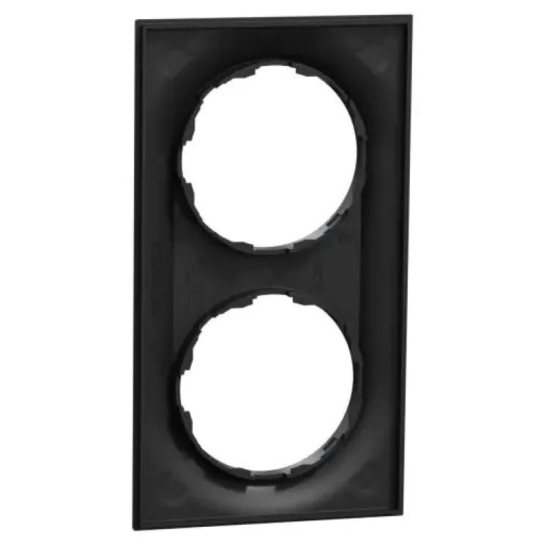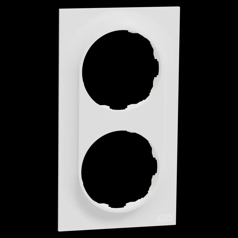 ELKO One 2-kehys, jonka mitat (L) 87 mm x (K) 158 mm x (S) 10,5 mm. Se on valmistettu kierrätetystä polykarbonaatista (PC). Tuotteen väri on musta (RAL 9005) ja se on mattapintainen. Se saavuttaa IP21-suojaustason.