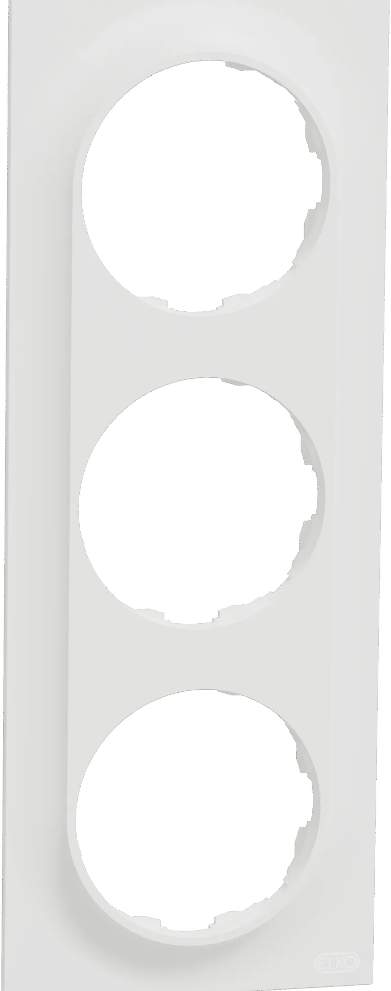 ELKO One 3-kehys ohuella ja tyylikkäällä muotoilulla. Soveltuu sekä pinta- että uppoasennukseen. Tuotteen mitat ovat (L) 87 mm x (K) 229 mm x (S) 10,5 mm. Se on valmistettu kierrätetystä polykarbonaatista (PC). Tuotteen väri on kirkkaan valkoinen (RAL 9003) ja se on mattapintainen. Se saavuttaa IP21-suojaustason.