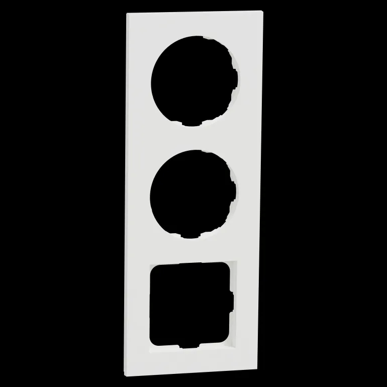 ELKO One 3-kehys, 1 kpl 56×56 aukko valkoinen. ELKO One -toimintojen pyöreän kahden aukon lisäksi kehyksessä on yksi neliöaukko, joka sopii 56 x 56 mm:n keskiölevyllisille tuotteille ELKO RS- ja ELKO Plus -tarjoamasta. Voidaan asentaa sekä vaaka- että pystysuuntaisesti. Valmistettu kestävästä kierrätetystä polykarbonaatista, mattapinta.