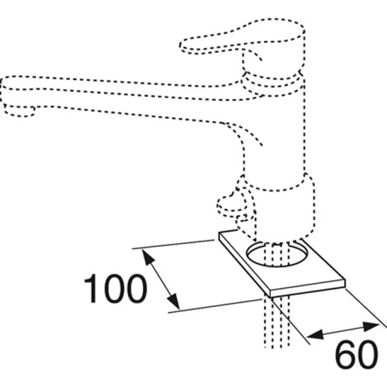 Peitelevy, mitat 100 x 60 mm. Vaihdettaessa 60 mm:stä (c/c) yksireikäiseen sekoittimeen.