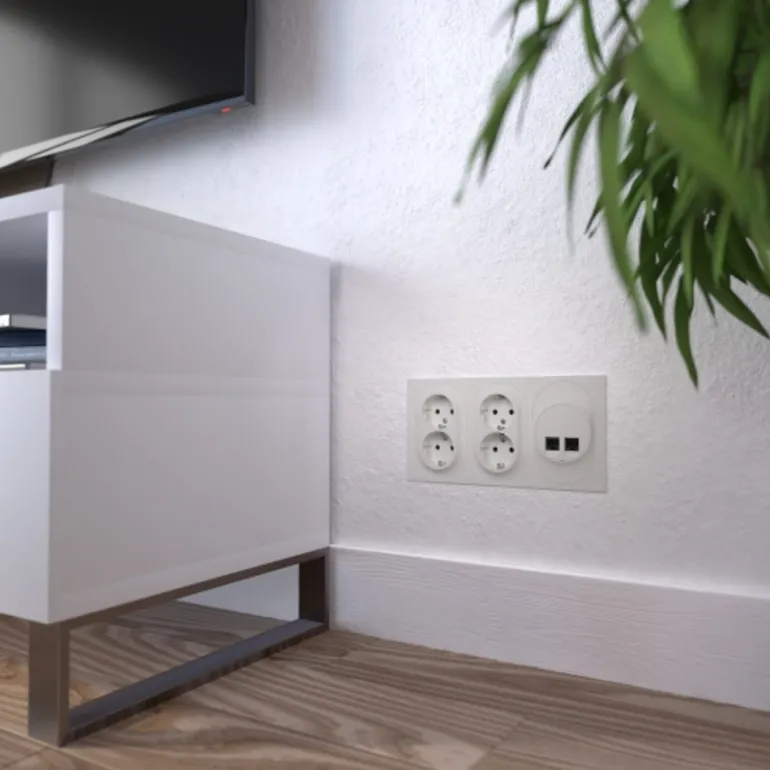ELKO One 3-kehys 2-pistorasialle valkoinen. Tuotteen mitat ovat (L) 229 mm x (K) 117 mm x (S) 5 mm. Se on valmistettu kierrätetystä polykarbonaatista (PC). Tuotteen väri on kirkkaan valkoinen (RAL 9003) ja se on mattapintainen. Se saavuttaa IP21-suojaustason.