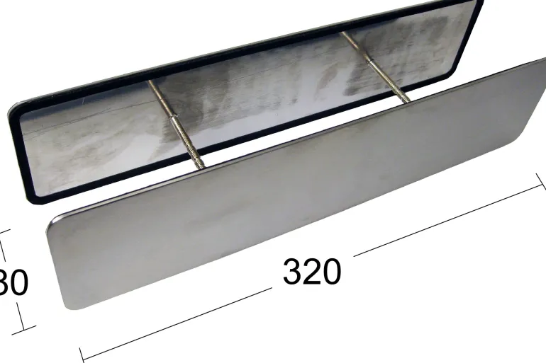 Peitelevy ruostumatonta terästä. Ovessa olevan tarpeettoman postiluukun reiän peittämiseen. Peitelevy vaikeuttaa oven avaamista ulkopuolelta postiluukun kautta. Peitelevyn ulkopuolella ei ole näkyviä ruuveja. Mukana katkaistavat katkouraruuvit M5 x 75 mm, jotka sopivat oveen vahvuudeltaan 25–90 mm. C/c 140 mm.