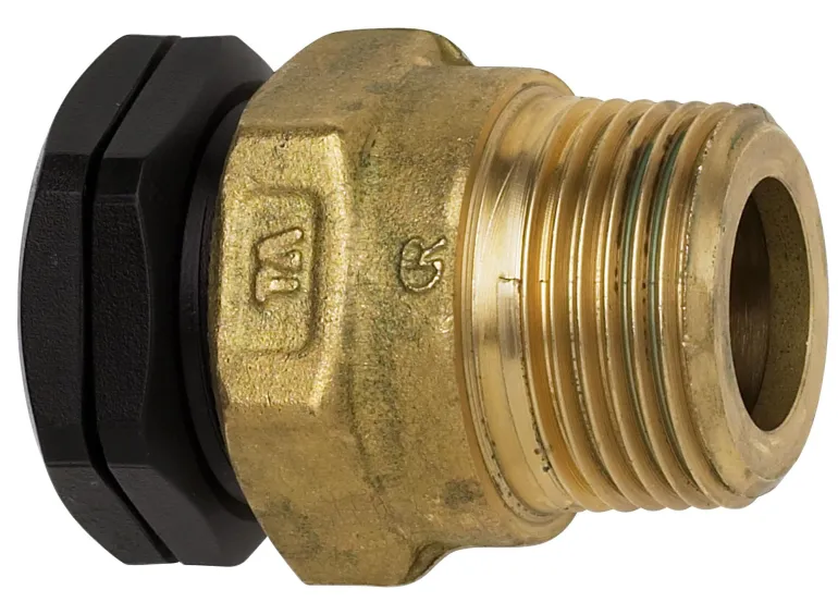 Painevalettu suora metallinen PEM-liitin (PRK), jonka koko on 25xG25 (25×1″). Päät: muovinen ulkopuoli.