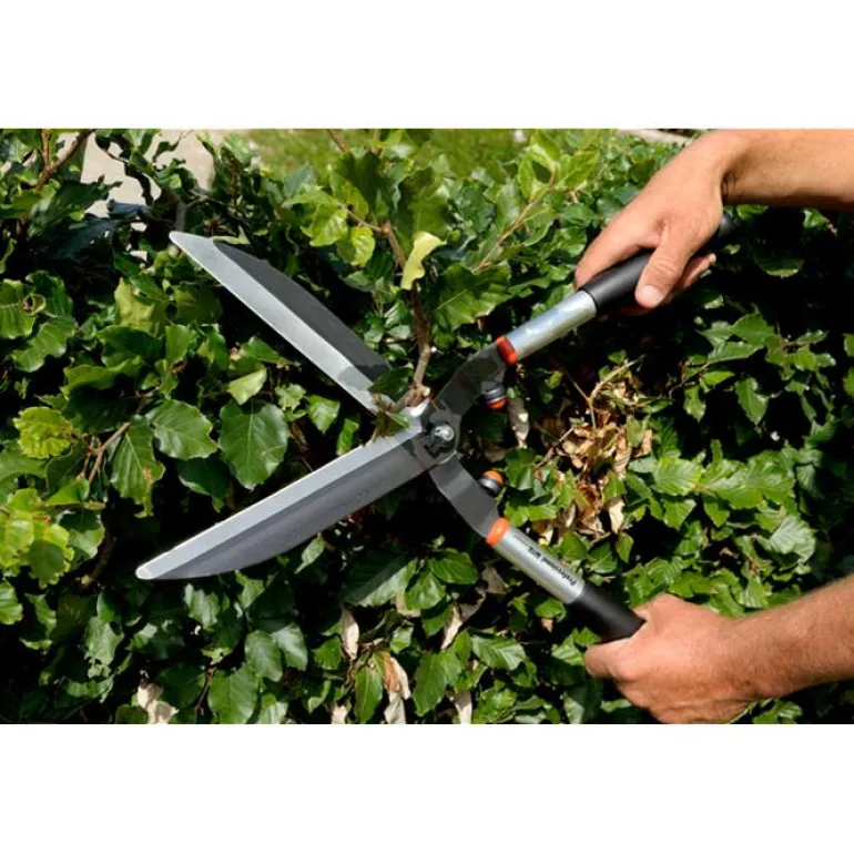 - Läpikarkaistut, osittain hammastetut terät leikkaavat siististi. Soveltuu erityisesti paksuja oksia (enintään 10 mm) sisältävien pensasaitojen leikkaamiseen.