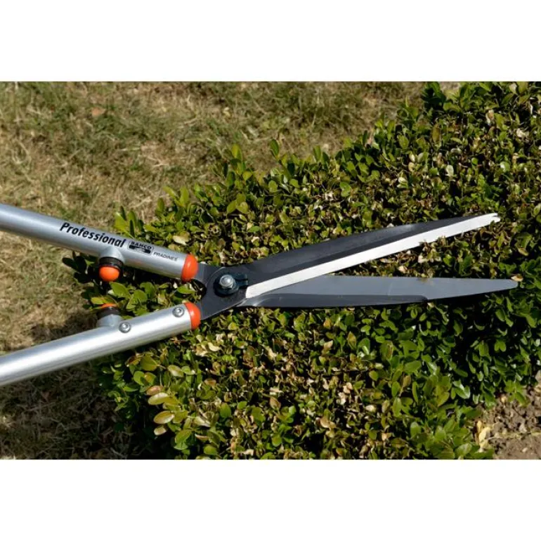 Pensassakset, pituus 650 mm, sileäreunaiset kapeat suorat terät jättävät siistin leikkausjäljen. Lehtien ja pehmeiden versojen leikkaamiseen. Pensassaksien terien pituus on 22,5 cm.
