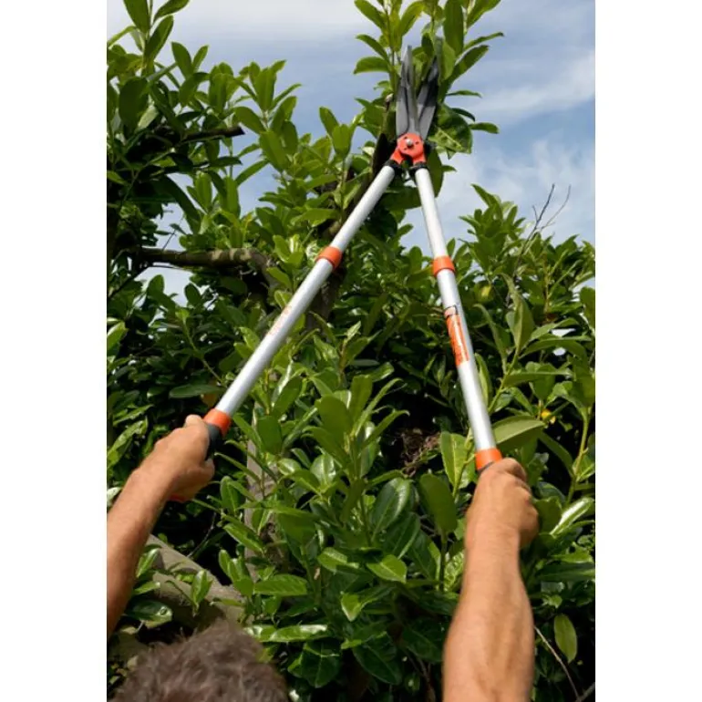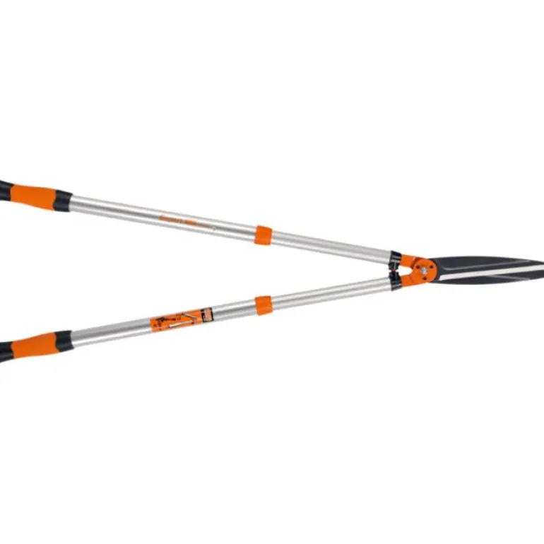 Teleskooppisilla alumiinivarsilla varustetut pensassakset, pituus 80–105 cm. Terien pituus on 20 cm, ja ne on valmistettu läpikarkaistusta teräksestä.