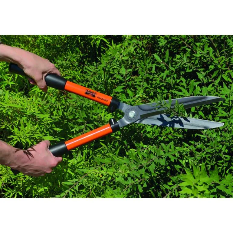 Bahco P59-25-F on perinteiset pensassakset, joissa yksinkertainen ja luotettava rakenne, miellyttävät putkimalliset varret ja muovikahvat, joista saa hyvän otteen. Sopii kaiken tyyppisille pensasaidoille. Taotut ja karkaistut terät, pituus 21 cm.