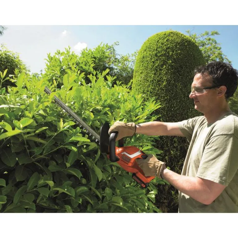 Black & Decker GTC1845L20-QW on pensassakset 18 V, terän pituus 45 cm, hammasväli 18 mm. Pensassakset on suunniteltu mukavaksi ja turvalliseksi käyttää. Kahva on suunniteltu käytettäväksi useilla otteilla, mikä tarjoaa optimaalisen mukavuuden ja hallinnan.