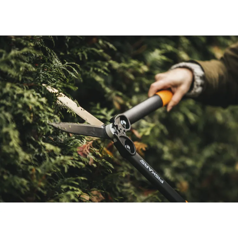 Fiskarsin pensassakset soveltuvat monenlaisiin puutarhan raivaustöihin, kuten pensasaidan tasoittamiseen sekä pensaiden muotoiluun ja trimmaamiseen. Ainutlaatuiset vaihdemekanismit tuottavat 3-kertaisen tehon ja helpottavat työskentelyä.